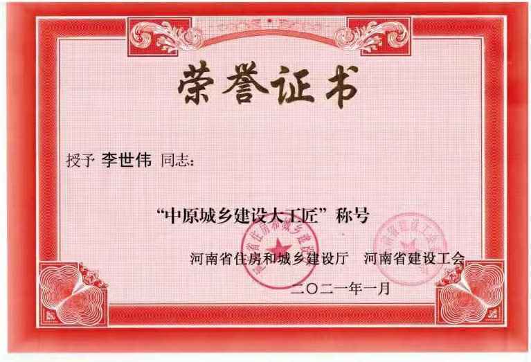 开云·官方网站登录入口-开云(中国)李世伟同志获“中原城乡建设大工匠”称号